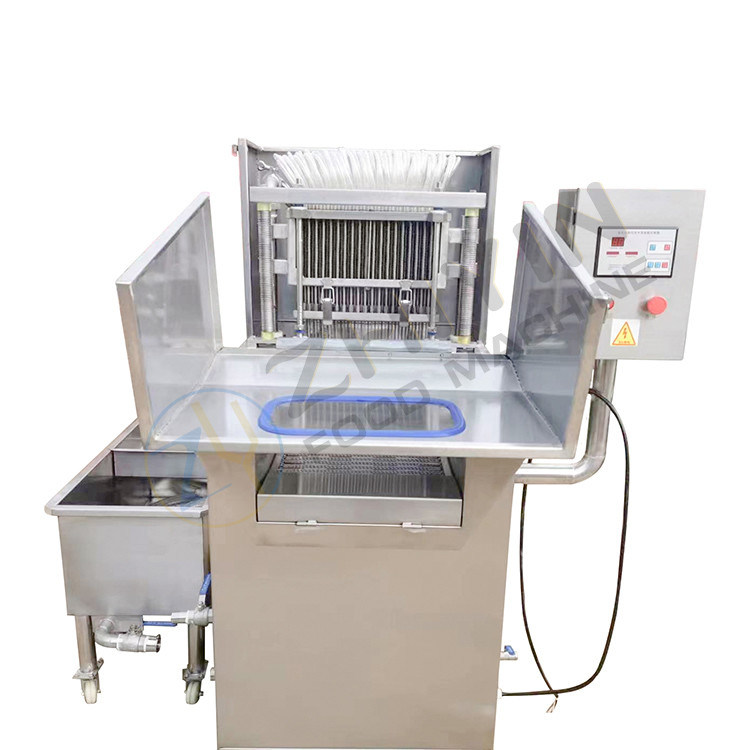 La macchina per l'iniezione di salamoia deve iniettare salamoia, amido, proteine di soia e materiali ausiliari nella carne per farla decolorarsi completamente,basandosi su tecnologie avanzate e dispositivi meccanici per iniettare gli sottaceti nel prodotto attraverso l'ago di iniezioneLo scopo è quello di marinare rapidamente, aggiungere condimenti, mantenere la nutrizione della carne e rafforzare il gusto.Secondo i diversi requisiti di processo, la velocità di passo, la distanza di passo, lo spazio della piastra di pressatura della carne e la pressione di iniezione possono essere regolati,e il liquido di decapaggio può essere iniettato nella carne in modo uniforme e continuo per ottenere l'effetto di iniezione più ideale.